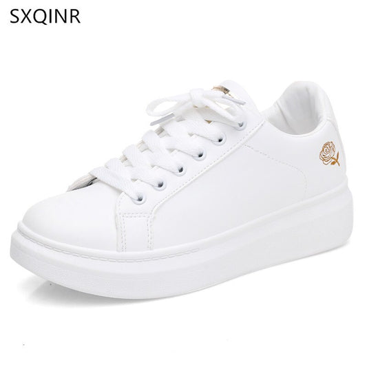 Women Casual Shoes 2020 New Spring Women Shoes Fashion Embroidered White Sneakers Breathable Flower Lace-Up Women Sneakers