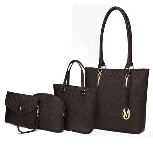 Vegan Leather Women'S Tote Bag, Small Tote Handbag, Pouch Purse & Wristlet Wallet Bag 4 Pcs Set by Mia K - Chocolate