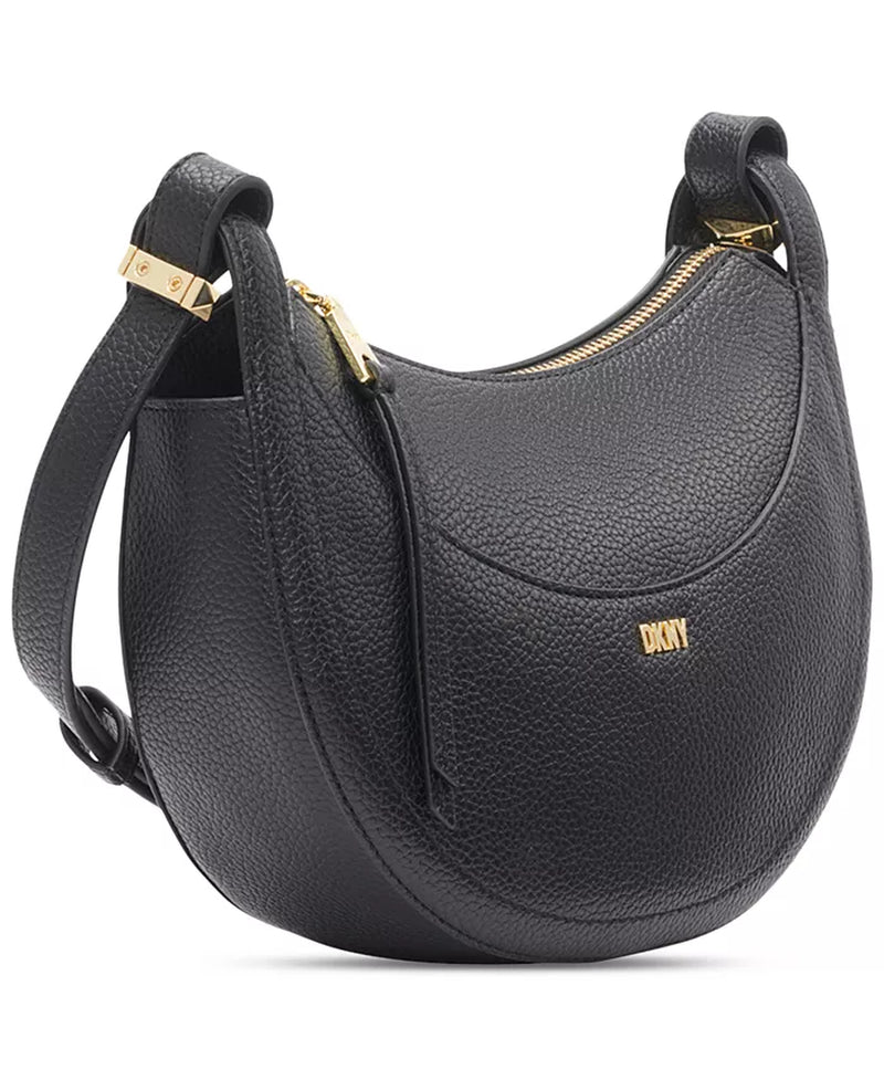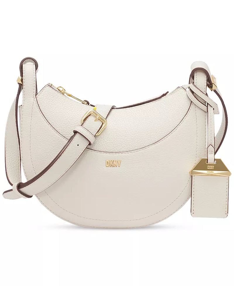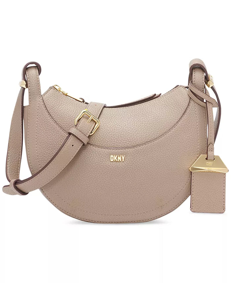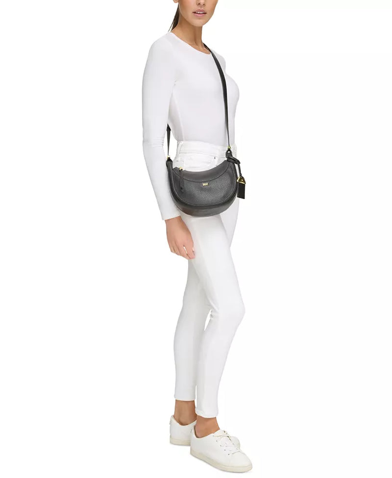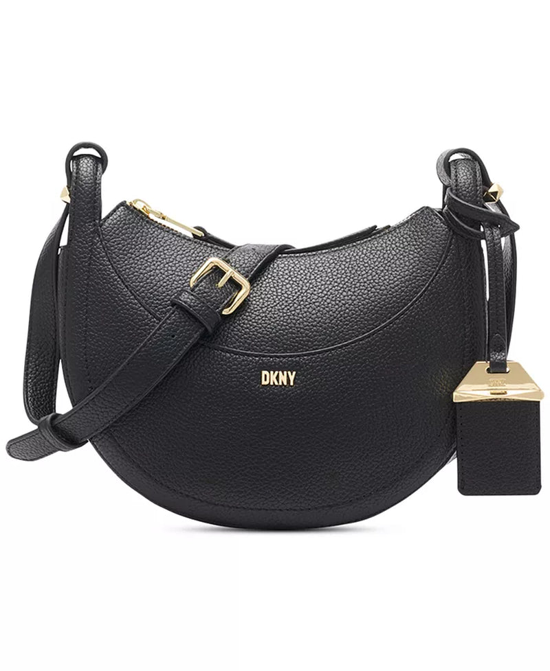 Crafted in a gorgeous crescent silhouette, this crossbody by DKNY features a zip closure, shiny hardware and an exterior slip pocket, perfect for any necessity you need easily within reach.