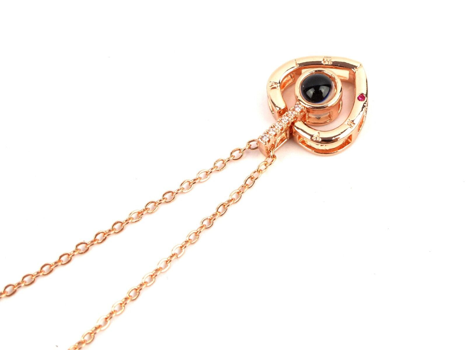 I LOVE YOU 100 Languages Projection Heart Silver/Gold Plated Love Necklace